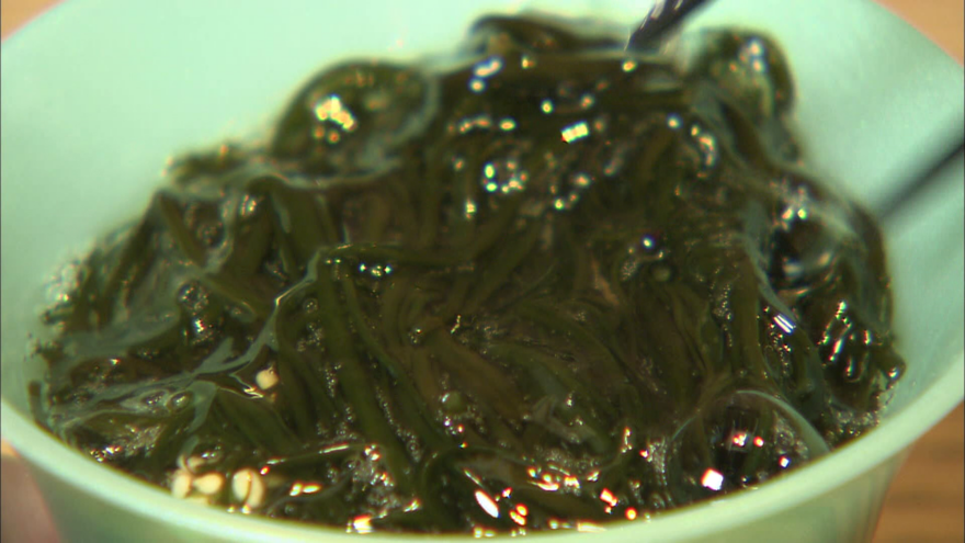 新たなエネルギー源としての活用や自然環境を改善する働きなどその可能性に着目した展示、中には山本さん親子にとって馴染みのワカメやモズクもありました。