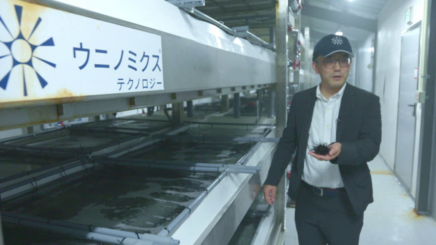 そんな山本さんに光明が指したのが、ベンチャー企業ウニノミクスの朝日町への進出決定でした。ウニノミクスは海洋環境の変化により増加したウニを集めて陸上で養殖し、商品価値を高めて販売する企業。ウニが海藻を食べつくし、「藻場」と呼ばれる豊かな漁場が失われつつある海の救世主としての役割が期待されています。