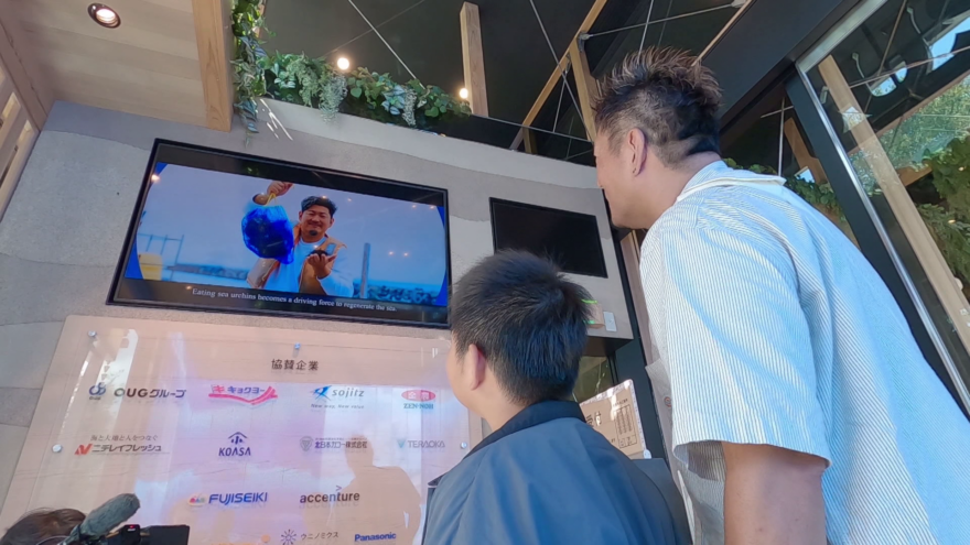 そのウニノミクスが制作した企業紹介の動画に山本さん親子が出演。そして、ウニノミクスが商品を供給する回転寿司チェーンの最大手「スシロー」の万博会場内の店舗で動画が上映されることになり、山本さん親子が見に来たというわけです。
