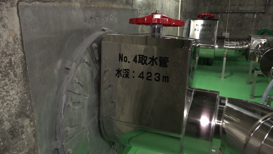 復旧工事は国の補助を受け、およそ28億円をかけて去年6月から行われました。入善沖およそ3キロの地点で、水深423メートルと467メートルから深層水をくみ上げる取水管2本を新たに設置しました。工事の完了により、これまでと同じ1日およそ7500トンの海洋深層水を取水できるようになりました。