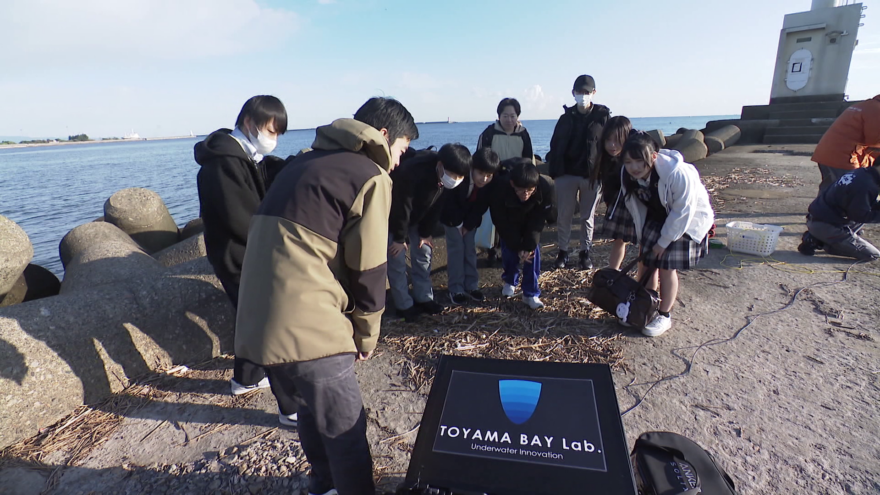 去年11月には、参加者が射水市の六渡寺(ろくどうじ)海岸を訪れました。海洋ごみが大量に打ち上げられている現場で、水中ドローンを使って海の中のごみを観察しました。また、海岸清掃ボランティアとともに打ち上げられたごみを拾いながら、減らない海洋ごみの現状について学びました。
