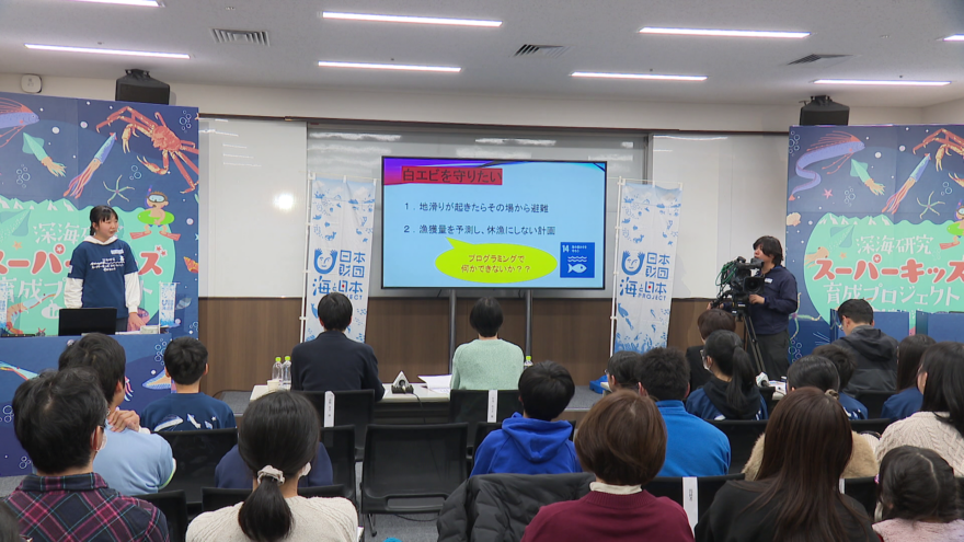 今回で2年目となる「深海研究スーパーキッズ育成プロジェクト」です。きょうは、県内の小中学生10人が、去年5月から富山湾などのフィールドで実践してきた調査や研究の成果を報告しました。